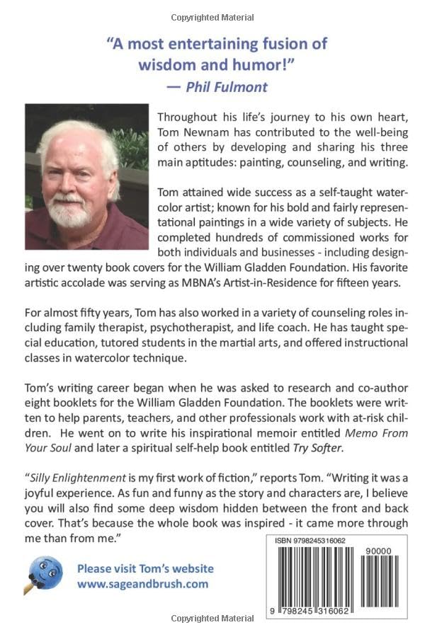 Well, that’s exactly what happens in Tom Newnam’s new book – Silly Enlightenment.  It’s a story that begins in a psychiatrist’s office but soon bounces between bowling alleys, psychic readers, karaoke bars and an unpleasantly-scented pool hall before ending up in a courtroom drama regarding accusations of toxic flatulence.  The point, it seems, is that laughter (or even a mild chuckle) might crack open a door that leads to… you guessed it!  Read it and find out!