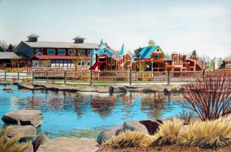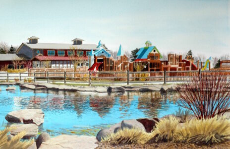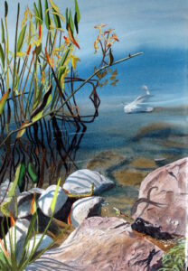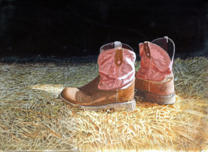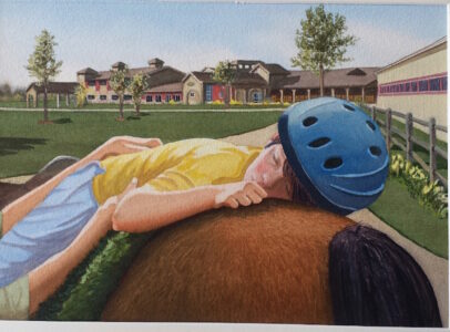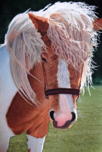 Tom is an enthusiastic supporter of Leg Up Farm, a non-profit therapy center for children with special needs near his home in York County.  Tom volunteers at the farm, which allows him to use his past work experience and training working with special needs children and family therapy, combined with his love of horses and animals.  Among many other types of therapies, Leg Up Farm uses horses and rescue animals for therapy – in ways that transform the lives of many special needs children and their families.   Tom is currently working on a very special portfolio of paintings inspired by, and about, Leg Up Farm, which will be offered at an upcoming charity auction dedicated to raising funds to support Leg Up Farm.   The watercolor paintings pictured here are part of the upcoming auction.